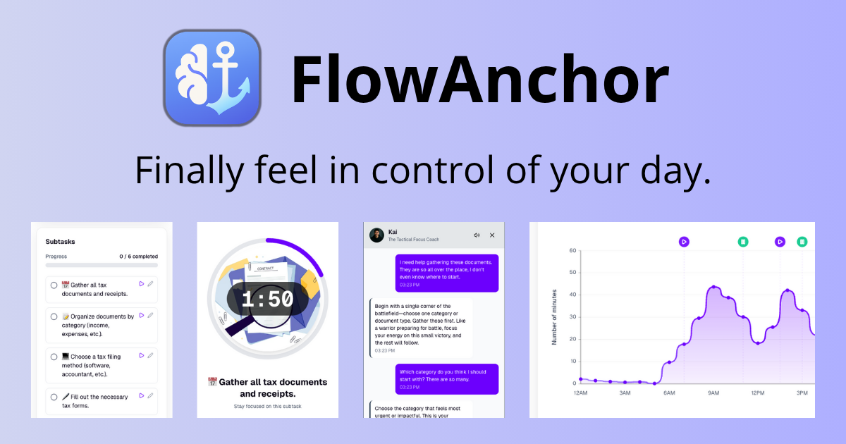 FlowAnchor cuts through that friction, helps you start instantly, and keeps you moving.